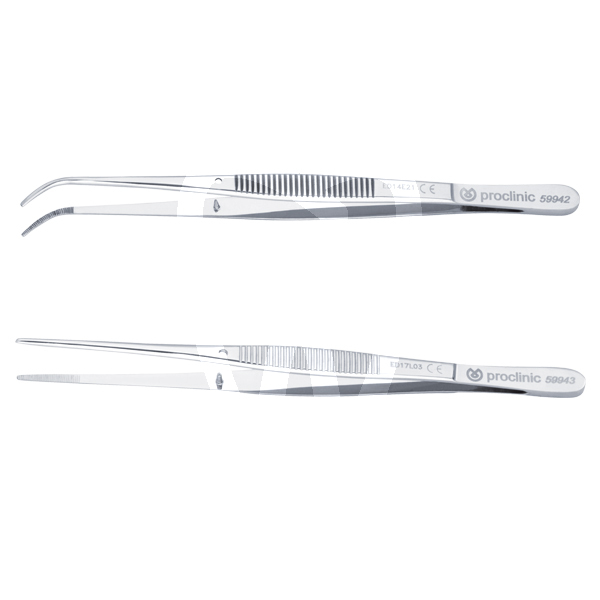 30 days return guaranteeFine microsurgery tissue pliers, ideal for holding soft tissue. Available in two shapes: Straight and curved. Size 12.5cm.