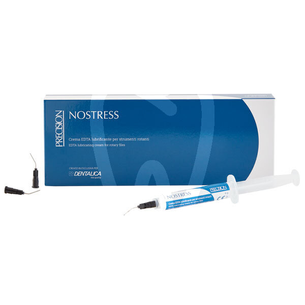 30 days return guaranteeNO STRESS EDTA Lubricating Cream is an endodontic EDTA-based cream with urea peroxide, indicated as an irrigating/lubricating aid during chemical-mechanical preparation of the root canal system. Used in combination with sodium hypochlorite, it supports canal cleaning by facilitating debris removal, smear layer management, and smoother instrument advancement during shaping and irrigation protocols. Sales format: 2 syringes of 7 g each + 10 tips.