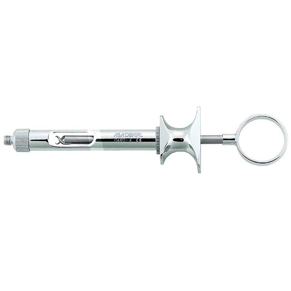 30 days return guaranteeThe ASA Single-Ring Anesthesia Syringe is a dental clinical instrument designed for administering local anesthetic cartridges during routine and surgical procedures. Its single-ring handle supports controlled aspiration and injection, while the double-hook system helps retain the cartridge securely throughout use. Supplied as 1 unit.