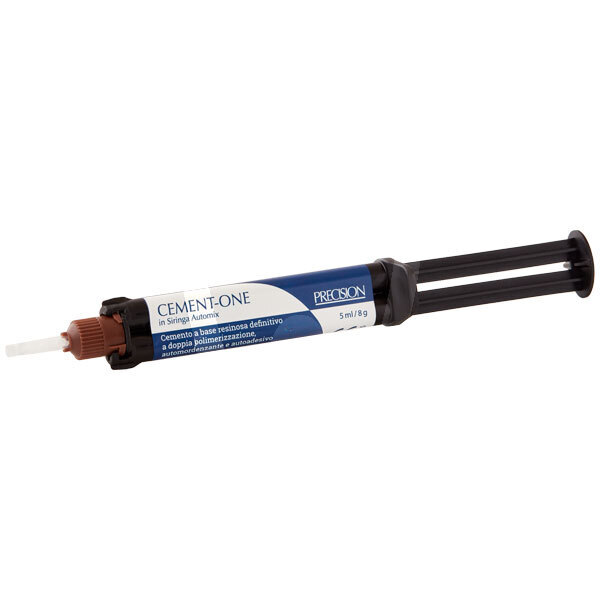 30 days return guaranteeCEMENT-ONE SYR.AUTOMIX 5 ML is a definitive resin-based luting cement with dual-curing, self-etching and self-adhesive action, designed for permanent cementation procedures in everyday restorative and prosthodontic workflows. Supplied in an automix 5 ml syringe, it supports consistent chairside handling for indirect restorations where reliable bonding and long-term shade stability are required.
