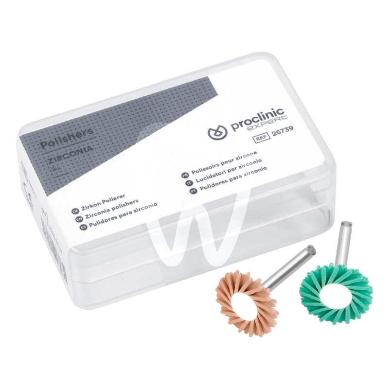 30 days return guaranteePULITORI ZIRCONIO is a two-step zirconia polishing system designed for chairside adjustment and finishing of zirconia restorations. It supports the clinical workflow when contouring, correcting, and refining surfaces after occlusal adjustment, helping achieve a smooth pre-polish and a high-gloss finish on zirconia inlays, onlays, veneers, and crowns. Supplied in a 1 pack with 2 units (green pre-polisher + pink high-gloss polisher).