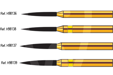 30 days return guaranteeBurs with standard 1.6mm FG shank. Yellow line, extra fine grit of approx. 35µm. New Lion burs from Horico. Designed specifically for working with sintered zirconia and pressed ceramics. 20% greater efficiency than conventional diamond tools, reducing working time and the risk of overheating the zirconia. Better price:performance ratio.