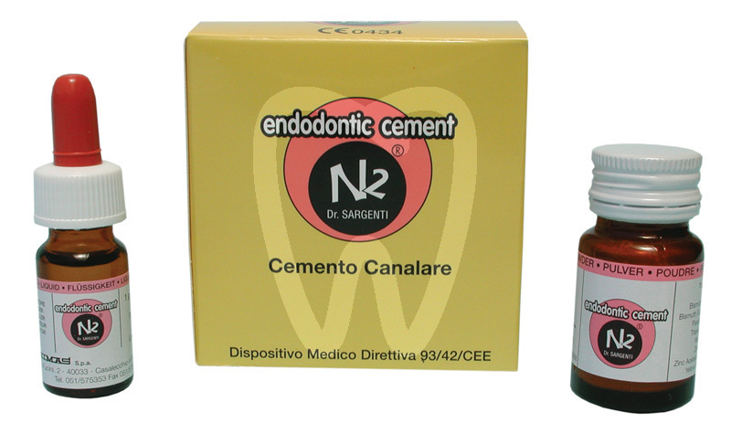 30 days return guaranteeENDODONTIC CEMENT N2 is an endodontic sealing cement intended for the definitive obturation of root canals, including cases involving devitalized or gangrenous teeth, within clinical endodontic procedures. Supplied as a powder and liquid system, it is mixed chairside to obtain a cement suitable for canal filling and sealing as part of the final root canal obturation phase.