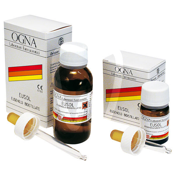 30 days return guaranteeEUGENOLO EUSOL 50GR is highly purified, double-distilled eugenol intended as a mixing liquid in dentistry, especially for zinc oxide-based powders and materials. Thanks to vacuum distillation with removal of initial and final fractions, it is obtained as an almost colorless eugenol, free from phenols and other extraneous substances that are often associated with strong irritation and pulpal or soft-tissue reactions. When progressively incorporated and mixed with zinc oxide powders, it forms eugenates (pastes) with a smooth flow and consistent handling for routine clinical procedures.