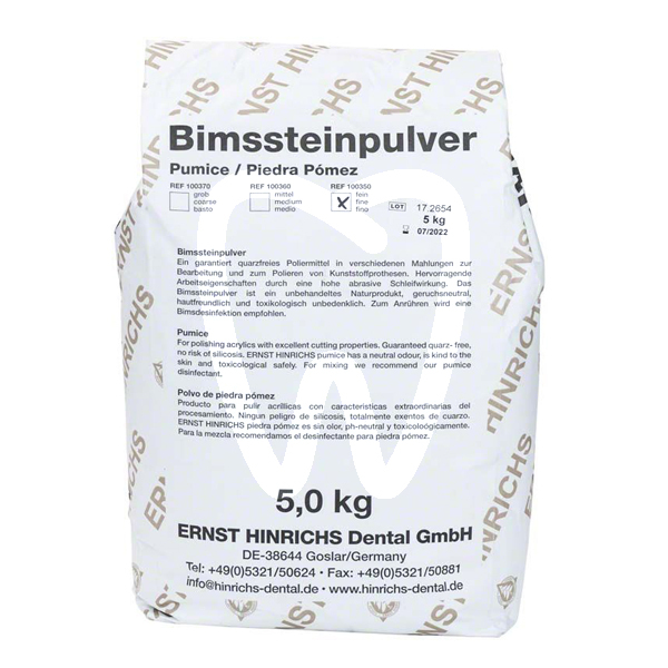 30 days return guaranteePUMICE POWDER FINE is a fine polishing pumice powder for dental laboratory use, designed for finishing and polishing acrylics and other common prosthetic materials. This quartz-free fine pumice supports safe, consistent polishing workflows while delivering high-quality surface refinement during the final stages of lab fabrication.