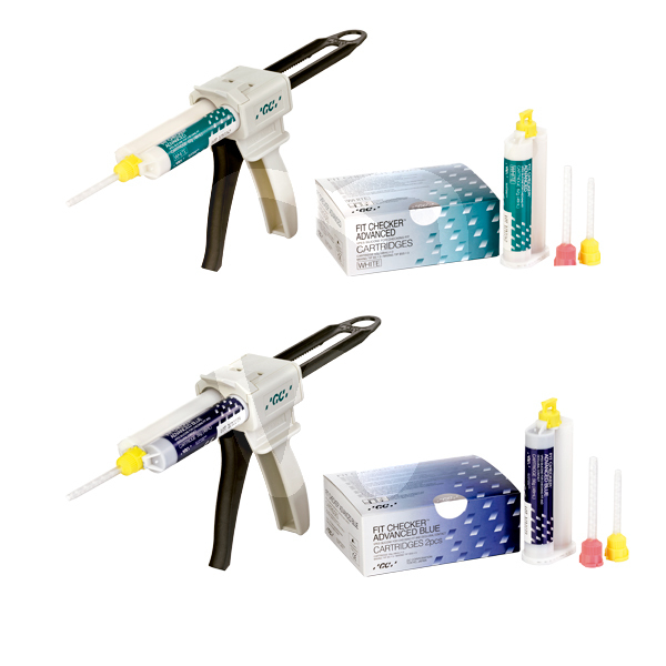 30 days return guaranteeBlue and White VPS Silicone for checking pressure spots and precise adjustment of prosthetic work. Thanks to their very thin consistency, short setting time and hydrophilicity, both materials are extremely practical to use and offer precise identification of all types of poorly fitting prostheses. The choice between 2 transparent colours with good contrast can be used to evaluate any type of prosthesis: blue for aesthetic restorations, such as ceramic-based crowns and bridges, or to check occlusal contacts; white for metal-based restorations and dentures. • Thixotropic consistency with good flowability under pressure • Minimum film thickness for precise restoration placement • Visible colour gradation for easy identification of a poor fit • Increased hardness to allow clean, easy trimming with a bur • High tear resistance for easy removal White colour for checking the fit of metal-based restorations and dentures Fit Checker™ Advanced Blue: the transparent blue colour can provide an analysis of the occlusal contacts, even with a thickness of less than 100?m