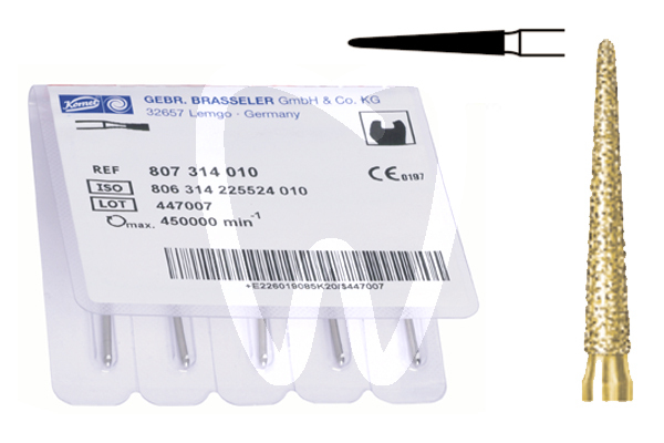 30 days return guaranteeSeries 2000 170µm grain. Quick cutting. Super-thick 180µm diamond burs for quick cutting. The special diamond grain selection technique and the way in which it is attached to the handle ensure rapid cutting with excellent cooling and homogeneous surfaces that are quick and easy to polish. Available for turbines in packets of 5 units. Gold with a green ring for easy identification.