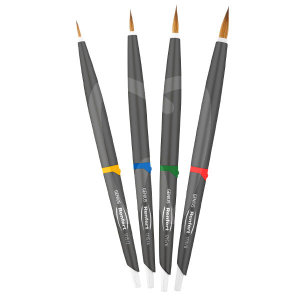 30 days return guaranteeMultifunctional handle: protects the brush tip. Optimum storage position. Non-slip texture thanks to its structuring. Comfortable handling. Protection mechanism: protects the brush tip during work breaks. Protective sleeve in the handle is slipped over the tip. Ideal storage position - standing on its tip. This prevents porcelain deposits and splaying of tip bristles. Natural, top-quality 1A Kolinsky bristles. A fine brush tip is formed due to the thick hair. Ideal combination of stability and elasticity for working with porcelain. Genius: No. 8 Especially for the Big-Brush technique.