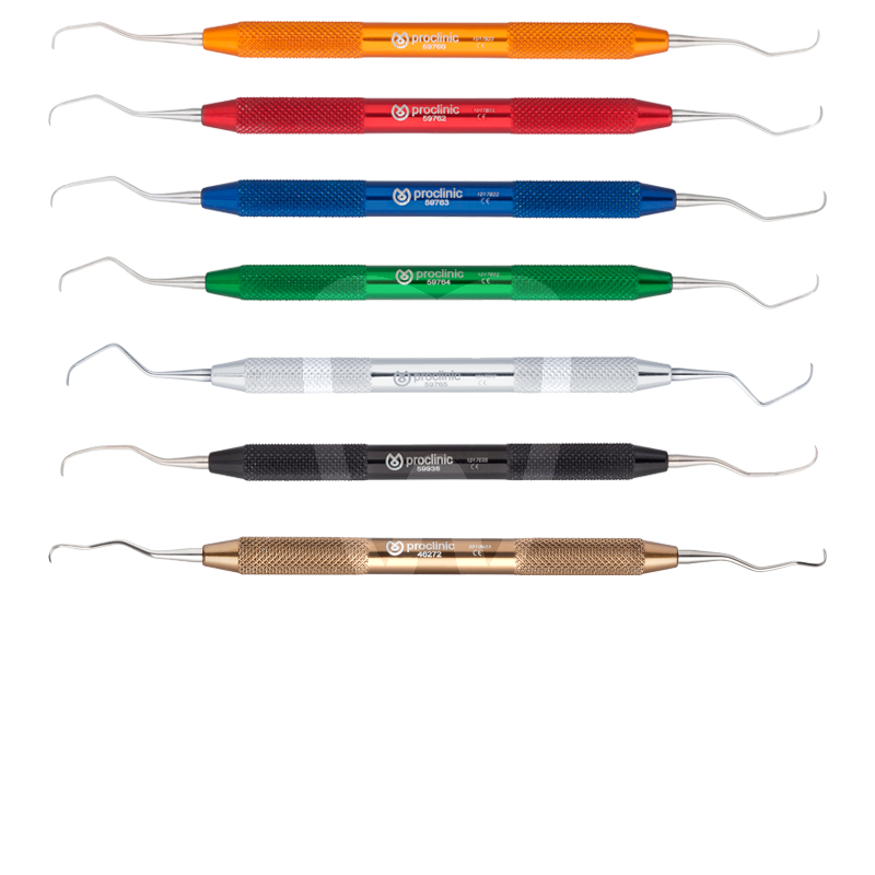 Aluminium curettes indicated for removing subgingival calculus. Different models available for each tooth shape.