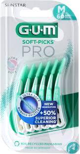 30 days return guaranteeGUM Soft Picks Pro Medium Sunstar are rubber interdental picks with soft bristles designed to support daily prevention and prophylaxis. They help gently and effectively remove plaque and food debris from interdental spaces and along the gumline where a toothbrush cannot reach. Their curved shape is intended to facilitate access to posterior teeth, improving hygiene in hard-to-reach areas.