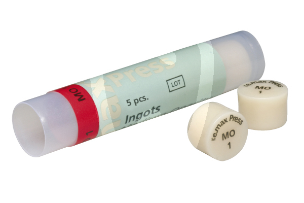30 days return guaranteeThese medium-opacity (MO) ingots can be used to fabricate substructures for vital or slightly discoloured teeth. Available in five shades and two sizes. Metal-free ceramic system made of highly aesthetic and extremely strong materials for use with press and CAD/CAM techniques. - For the press technique, there are two types of ingots: IPS e.max Press, a high-strength lithium disilicate ceramic, and IPS e.max ZirPress, an aesthetic glass ceramic for pressing onto zirconium oxide structures. - For CAD/CAM applications, you can choose between IPS e.max CAD lithium disilicate blocks and high-strength IPS e.max ZirCAD zirconium oxide blocks, depending on case requirements. - 5 components for customised solutions. - Maximum flexibility due to the modular design of the system. - Unique layering ceramic for the complete IPS e.max system. - High colour stability. IPS e.max Press, biocompatible lithium disilicate ingots. High-strength (400Mpa), homogeneous material. - Ingots indicated for the fabrication of single crowns and anterior and premolar bridge frameworks. - IPS e.max Press can be layered and customised using IPS e.max Ceram ceramic. - IPS e.max Press ingots are available in two different levels of opacity. - Press temperature 920ºC.