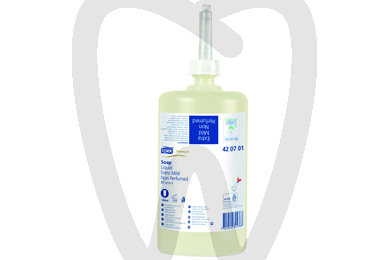 Soap designed for those who frequently wash their hand such as hospital medical staff, dentists, etc. Very soft, creamy and foamy; dermatologically tested. Tork® Premium Extra Mild Liquid Soap; free from artificial fragrances and colours.