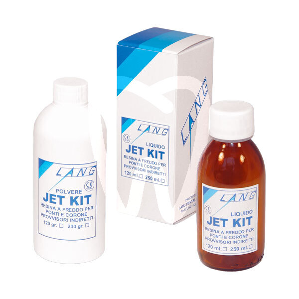 30 days return guaranteeJET KIT LIQUID 250 ML LANG is a self-curing liquid acrylic resin intended for the fabrication of long-term provisional restorations designed to remain in the oral cavity for extended periods. Within clinical prosthetics workflows, it supports the creation, relining, and repair of temporary crowns and bridges, offering a reliable option for chairside and laboratory procedures. According to independent testing (Clinical Research Associates) on provisional resins, Jet Kit has been rated among the most reliable for resistance to abrasion and functional loading.