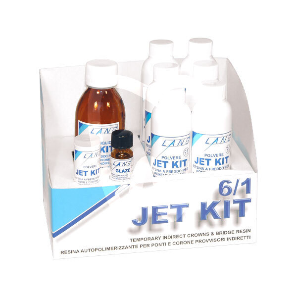 30 days return guaranteeJET KIT NEW COFANETTO 6/1 LANG is a self-curing (autopolymerizing) acrylic resin designed for the fabrication of long-term provisional restorations intended to remain in the oral cavity for extended periods. Developed for prosthetics workflows in the clinic, it supports the production of durable indirect temporary crowns and bridges where high mechanical strength and reliable polymerization are required.