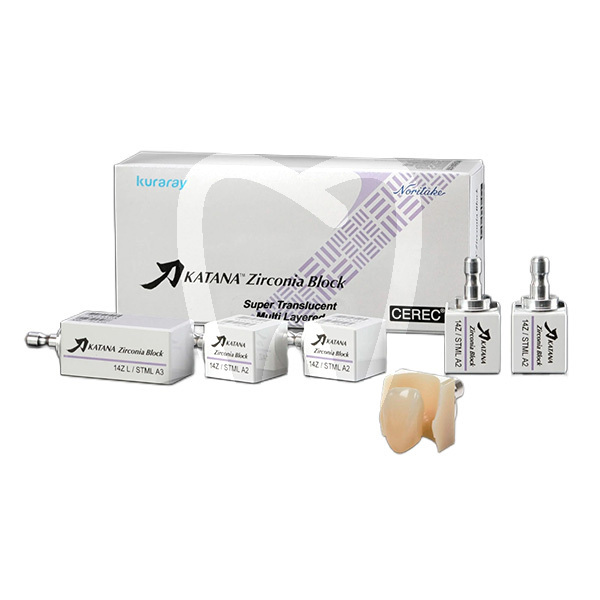 30 days return guaranteeKATANA ZR BLOCK STML 14Z A3 5PZS CEREC is a multilayer zirconia oxide CAD/CAM block for laboratory workflows, designed to mill natural-looking monolithic restorations. Its four-layer, graduated shade concept supports tooth-like color transitions, helping reduce the need for manual staining (maquillage) and streamlining finishing. Supplied in a 5-unit pack, it is intended for CEREC-compatible milling workflows.