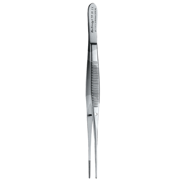 - Tissue pliers with inlay for increased suture grip.