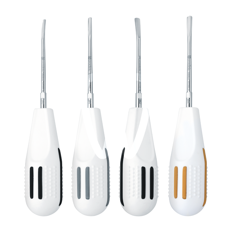 30 days return guaranteeDesigned to cut ligaments. The fine blade compresses the socket, cuts through the membrane and facilitates extraction with the least possible damage. Similar to elevators but with much sharper points, they combine the functions of a periosteotome and elevator in a single instrument. Ideal for broken pieces and carious roots. The set includes 4 instruments.