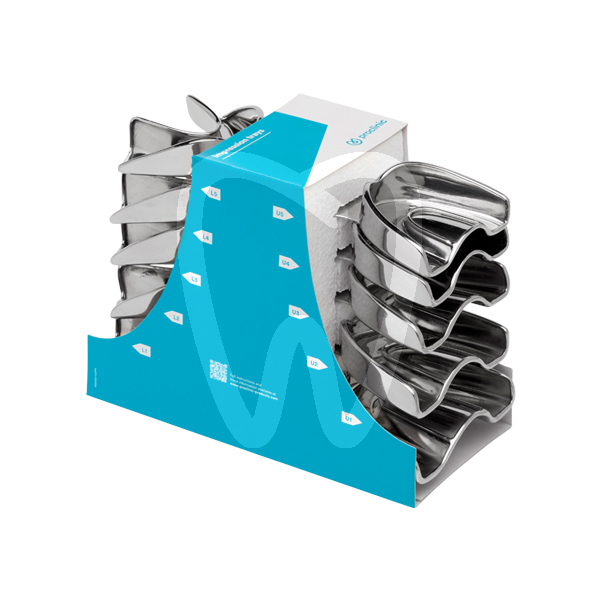 30 days return guaranteePack of 10 impression trays. Made of non-perforated stainless steel with retention lip. Contains 5 upper impression trays and 5 lower impression trays. Sizes: U1, U2, U3, U4, U5 and L1, L2, L3, L4, L5.