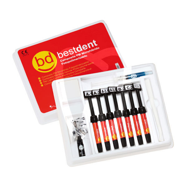 30 days return guaranteeMicrohybrid composite. - This composite has a microparticle fill-density of 77%, with all microparticles having a diameter of less than 5 microns. This means it can be used as a composite not just for aesthetic restorations of anterior teeth but also for restorations in molars with aesthetic requirements. Its mechanical properties, shine and wear resistance are very similar to other products available on the market. All of these products meet ADA specifications and ISO standards.
