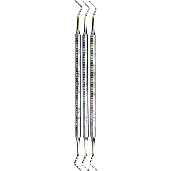 Metal plugger with an octagonal handle used to fill and pack all types of plastic, self-curing and light-cured materials, such as cements, filling composites, etc.