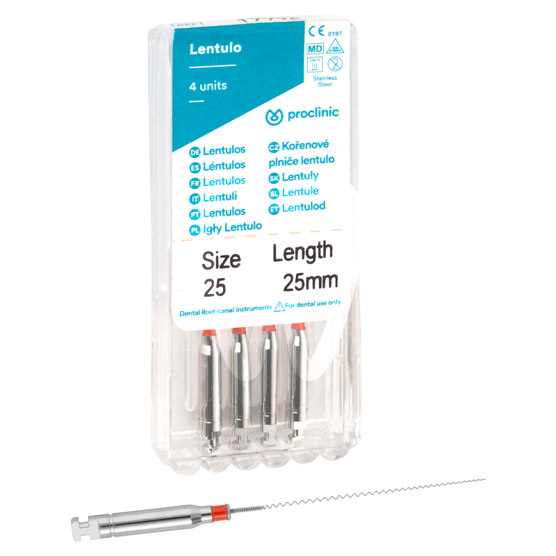 30 days return guaranteeLentulo Spirals No. 25 25 mm are flexible rotary endodontic instruments for contra-angle (CA) handpieces, designed to support root canal sealing and cementation procedures. They help carry sealers and cements toward the apical area, promoting uniform distribution inside the canal while assisting in reducing trapped air within the cavity.