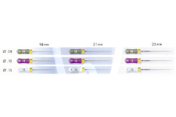 Dentsply C+ Files for initial instrumentation of root canals. These instruments with a much higher torsional strength than conventional files facilitate the location of canal orifices and easy access to the apical third. The pyramidal section tip facilitates insertion during catheterisation. Deep markings on the instrument allow for accurate positioning of the silicone stop and easier length determination when working with X-ray. The square cross-section offers greater resistance to deformation. Three lengths, 18, 21 and 25 mm, allow optimal efficiency in all clinical cases. The assortments contain 6 units with 2 of No. 08, 2 of No. 10 and 2 of No. 15.