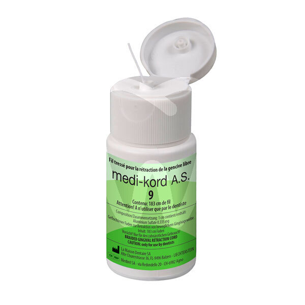 30 days return guaranteeMEDIKORD A.S. Impregnated Retraction Cord No. 9 is a braided cotton gingival retraction cord pre-impregnated with an aluminium sulfate solution (0.335 mg/cm · 16 H2O) and dried using a technique designed to preserve the activity of the active ingredient. In clinical use, moisture from healthy tissue reactivates the agent, supporting rapid gingival retraction to fully expose the gingival margin without damaging the tissue. Supplied as 1 unit of 183 cm, it is intended for routine prosthetic and impression procedures where gingival management is required.