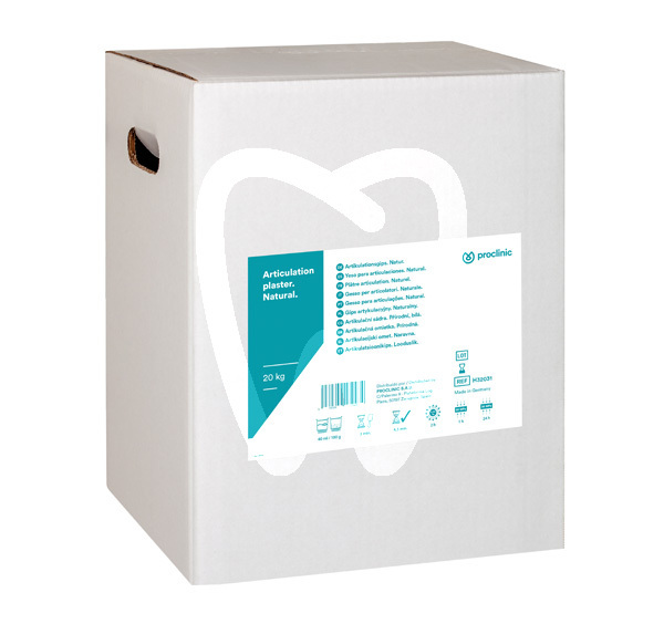 30 days return guaranteeNatural White Articulating Plaster (Type II) is a special dental laboratory gypsum designed for the accurate mounting of models in articulators and for the fabrication of precision milling bases. Supplied in a 20 kg format, it is intended for routine lab workflows where controlled setting behavior and dimensional stability are required for reliable occlusion and repeatable positioning.