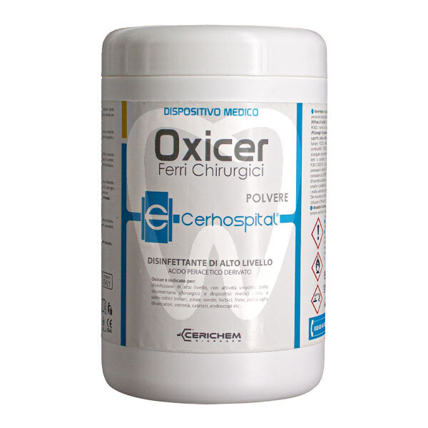 30 days return guaranteeOXICER CERICHEM is a high-level disinfectant and cold sterilizing agent for dental laboratory use, designed for the disinfection and sterilization of finished dental prostheses. Formulated with enzymatic additives, it helps dissolve blood residues and provides a strong cleaning action across a wide range of dental materials commonly handled in the lab (including alginate, gypsum, and similar substrates) within professional protection and hygiene protocols.