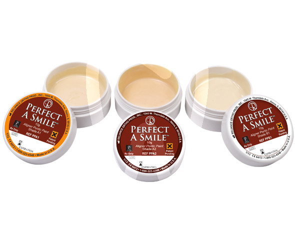 30 days return guaranteeProduct designed to offer an aesthetic solution in cases with a lack of a piece or more with aligners. Perfect A Smile is a pontic paint to apply in the aligner. Light-cure paste. A light application in the spaces of the aligner. Translucent to match enamel. High elasticity modulus, no cracks or splinter. It bonds to any clear aligner. Quick and economical, no doctor chairtime, no lab fees or delays. Easy temporary bridge. Each jar has enough material for around 80 pieces