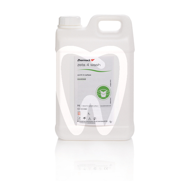 30 days return guaranteeCleans and deodorises all washable surfaces: sinks, toilets, tiles, hospital floors, clinics, dental surgeries and prosthetic dental laboratories. Cationic and non-ionic surfactant formula, it cleans quickly and thoroughly without damaging materials such as rubber, wood, porcelain, ceramic, enamel and metals. ZETA 4 WASH is foam-free, more than 90% biodegradable and eliminates fermentation processes.