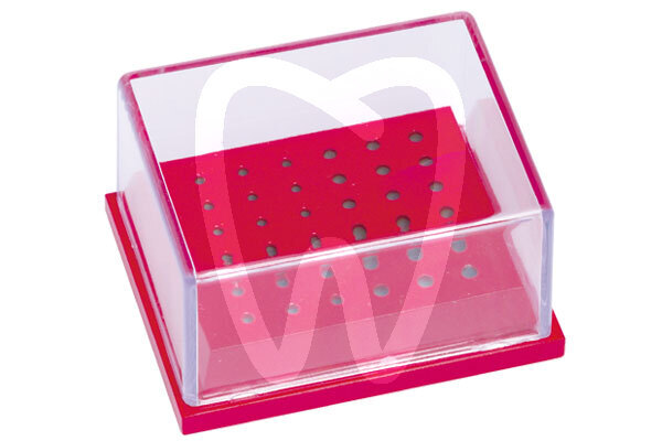 30 days return guaranteeRed. Made from coloured aluminium so the bur stands can be sterilised by any means. The transparent lids can be chemically sterilised at low temperatures. The heavy base prevents it from sliding.