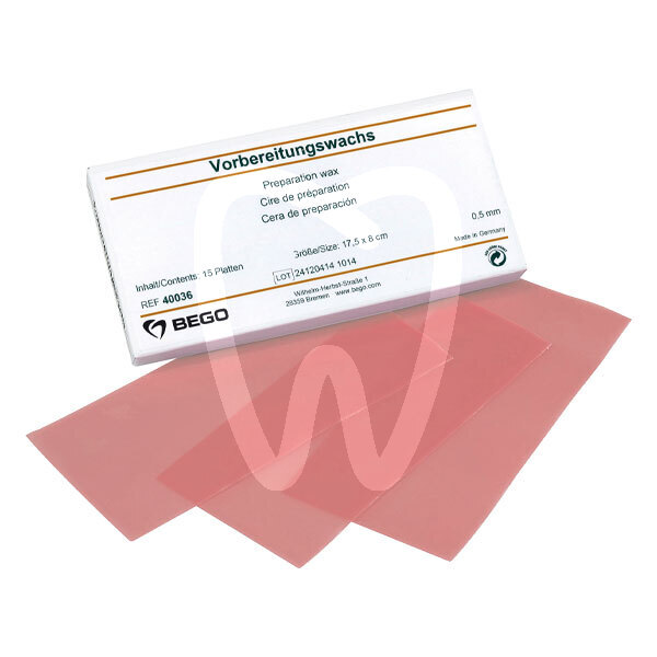 30 days return guaranteePreparation wax for use as saddle spacer. Can be easily adapted to master models. Excellent fit, user friendly and safe. 15 sheets, 0,6 mm. Size: 17,5 x 8 cm.