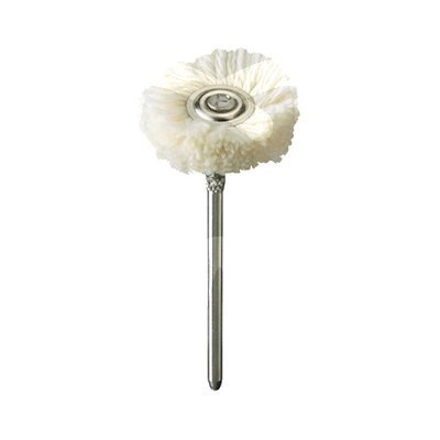 Indicated for dental lab polishing of prosthetic components and restorative work where a cotton brush is appropriate, typically in combination with polishing pastes/compounds. Suitable for finishing steps that require gentle surface refinement and shine enhancement on compatible materials, following the manufacturer’s recommended procedure and rotational parameters.