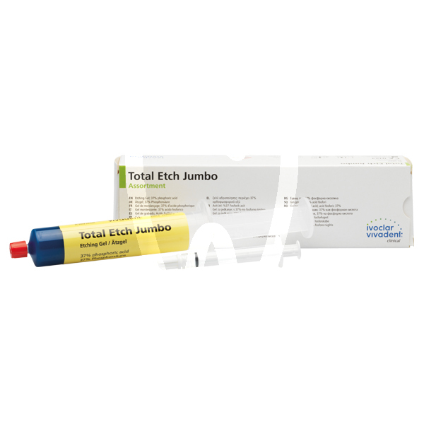 TOTAL ETCH JUMBO can be used for selective enamel etching or for total-etch techniques in indications such as: composite restorations; adhesive cementation of inlays, crowns, bridges, veneers, adhesive bridges, and root posts; splinting/immobilization with a splint; adhesive bonding of attachments and dental jewelry (e.g., Skyce); and fissure sealing.