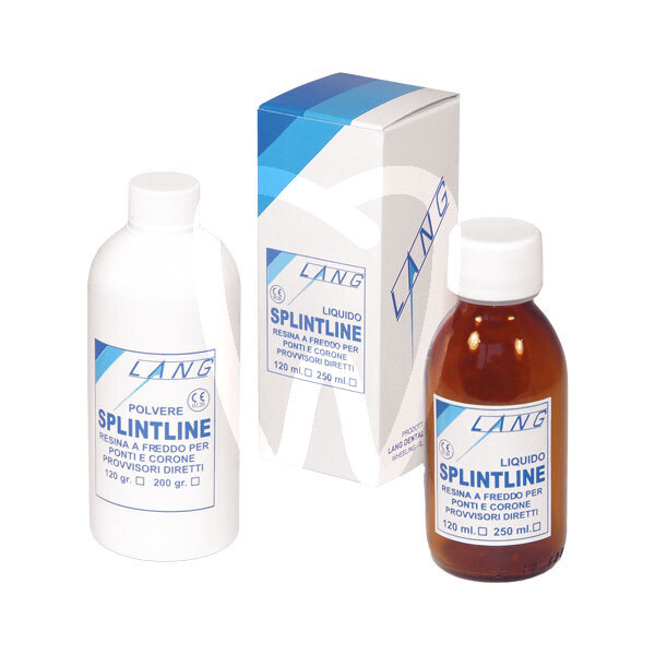 30 days return guaranteeSPLINTLINE LIQUID LANG is a 120 ml liquid refill for Lang provisional acrylic resin systems, designed for cold self-curing (autopolymerizing) acrylic resin used in prosthodontics. It supports the chairside fabrication of temporary crowns and bridges directly in the dental clinic, as well as relining and completion procedures for provisional restorations.