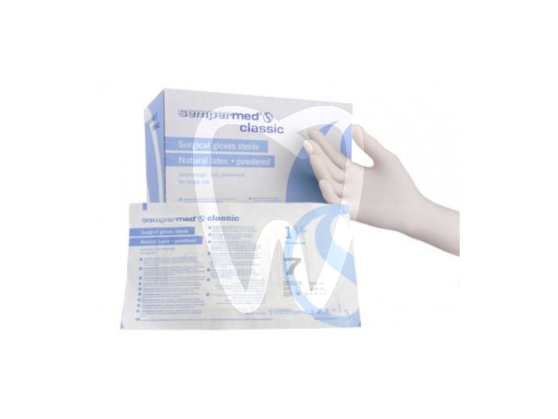 30 days return guaranteeGUANTI STERILI SEMPERMED CLASSIC N.7.5 are sterile surgical gloves made from natural latex, designed for aseptic clinical procedures where reliable barrier protection and tactile sensitivity are required. Their fully anatomical design supports correct hand positioning during surgery and other sterile interventions in dental and clinical settings. Sold as 1 pair of sterile gloves.
