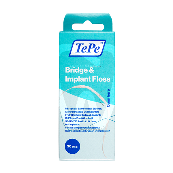 30 days return guaranteeTEPE Interdental Floss for Bridges and Implants is a wide, spongy interdental floss made of individual filaments, designed to support daily oral hygiene in patients with fixed prosthetics and orthodontic appliances. It is intended to facilitate cleaning around bridges, implants, and brackets, helping maintain gingival health, including in patients with sensitive gums. Sales format: 1 box with 30 floss threads.