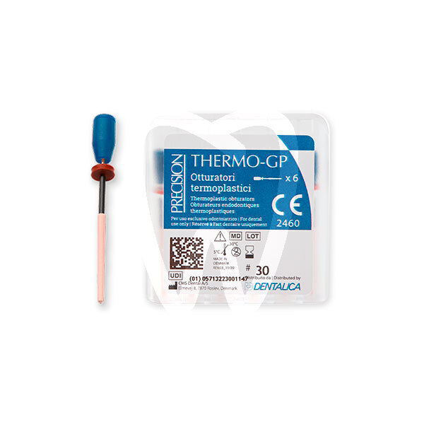 30 days return guaranteeTHERMOGP OBTURATORS 6 pcs No.25 are endodontic obturators designed for fast and reliable root canal obturation using thermoplastic gutta-percha. The system is intended to help achieve a complete three-dimensional fill of the prepared canal; in typical clinical workflow, a single obturator is used to obturate the entire root canal.