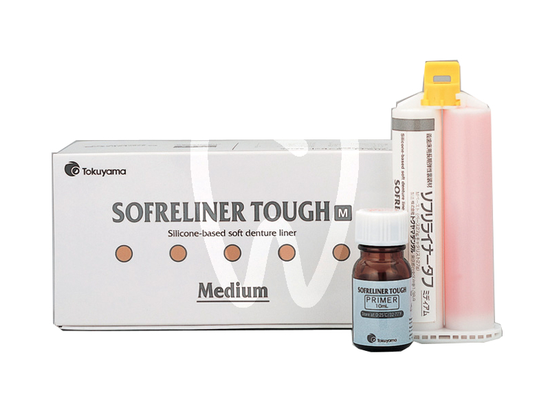 30 days return guaranteeTOKUSO SOFRELINER TOUGH SIR.54gr MEDIUM is a medium-soft, silicone-based lining resin for denture relining procedures, suitable for both direct (chairside) and indirect (laboratory) techniques. It is designed to improve comfort and fit in challenging prosthetic cases, particularly where soft tissues are delicate or anatomical conditions complicate denture adaptation. Supplied as a 54 g cartridge.
