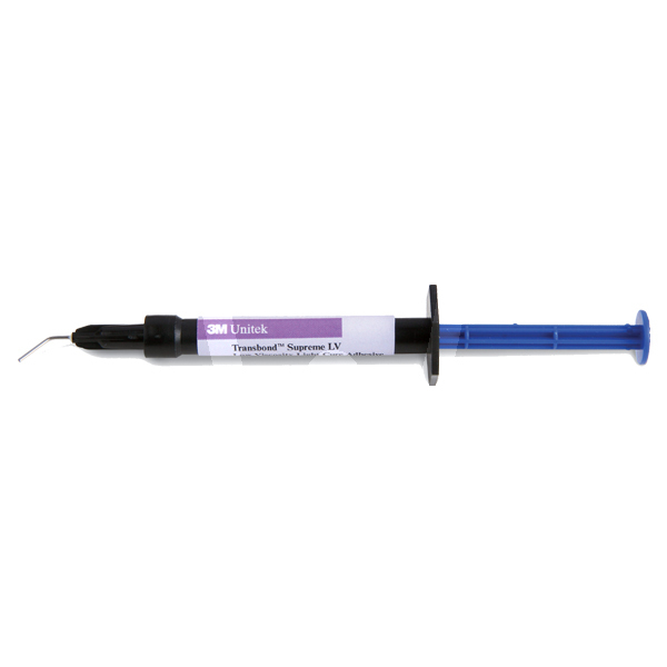 30 days return guaranteeTransbond™ Supreme LV Low-Viscosity Light-Cure Adhesive is a flowable orthodontic adhesive whose low viscosity offers advantages for indirect bonding or wherever a flowable adhesive may be indicated. Transbond™ Supreme LV Adhesive flows when dispensed from the syringe, but stays in place without slumping or running prior to light-curing. The convenient metal syringe tips ensure precise application of the desired amount of adhesive without waste, making it economical as well as practical. Flowable adhesive indicated for direct and indirect cementation. Nanotechnology fillers for exceptional bond strength and handling. Efficient dispensing, no waste. Compatible with all 3M™ Unitek™ primers.