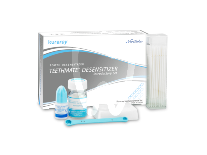 30 days return guaranteeTEETHMATE DESENSITIZER INTRO KIT is a professional desensitizing system for the clinical management of dentin hypersensitivity within prevention and prophylaxis protocols. It is designed to provide an effective and natural approach by forming hydroxyapatite (HAp), the most resistant mineral in the human body. The hydroxyapatite generated mechanically bonds to the natural hydroxyapatite present in teeth and crystallizes from the base, helping seal exposed dentinal tubules and enamel microcracks for a durable outcome.