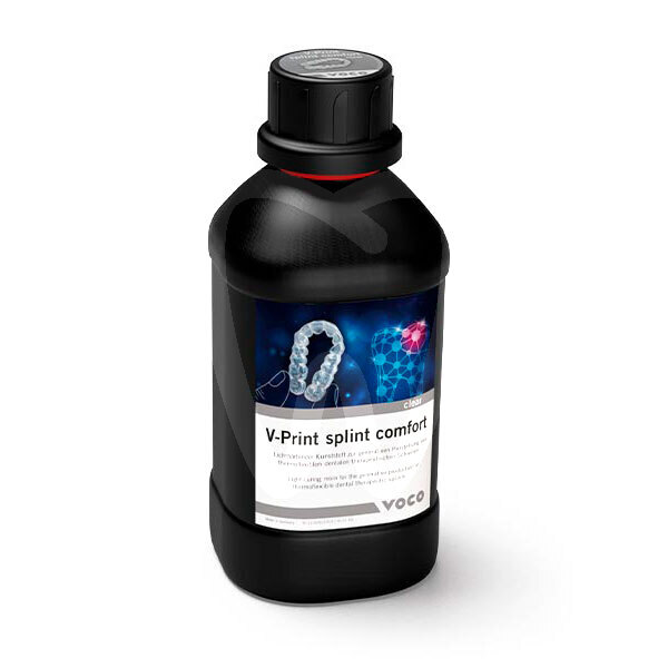 30 days return guaranteeV PRINT SPLINT CLEAR COMFORT 1000G VOCO is a light-curing resin designed for additive manufacturing (3D printing) of thermoflexible dental therapeutic splints. Intended for CAD/CAM laboratory workflows, it supports the production of clear, patient-friendly appliances for long-term wear where comfort, durability and discreet aesthetics are required.
