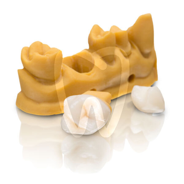 Indicated for CAD/CAM laboratory 3D printing of permanent individual restorations, including single crowns, inlays, onlays and veneers. Characterisation of light-curable workpieces should be carried out using composite stains and remains the responsibility of the user.