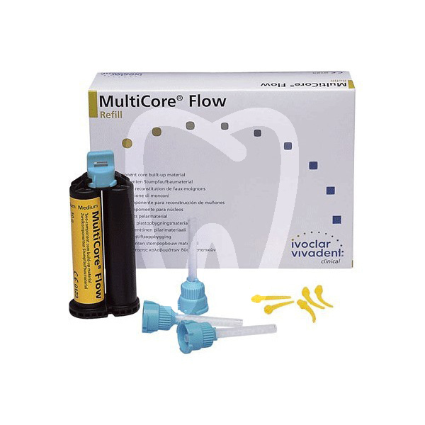 30 days return guaranteeMedium colour. Self-curing composite for core buildup (can also be light-cured), radiopaque and with a high filler content. MultiCore® is available in two viscosities: - MultiCore® Flow (injectable): for buildups using the matrix technique, supplied in double cartridges with an automix tip. MultiCore® HB (mouldable): for buildups using the moulding technique, supplied in 2 paste/paste syringes for hand mixing. Does not stick to instruments.