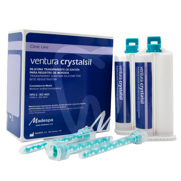 30 days return guaranteeVENTURA CRYSTALSIL TRANSPARENT SILICONE is a transparent addition-cure silicone designed for the fabrication of high-precision matrices and registrations in dental laboratory workflows and restorative dentistry. Its high transparency supports clear visualization of light-curing composite during aesthetic build-ups, while the material’s rigidity helps maintain dimensional stability to accurately replicate a diagnostic wax-up or the initial model.