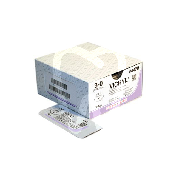30 days return guaranteeAbsorbable, synthetic, braided, multifilament suture. Indicated for soft tissue approximation and ligation. The suture maintains its tensile strength for approximately three to four weeks in tissue, retaining 60-65% of its tensile strength at 14 days and 30% at 28-30 days. Vicryl may also be treated for more rapid breakdown in rapidly healing tissues or impregnated with triclosan to provide antimicrobial protection of the suture line.