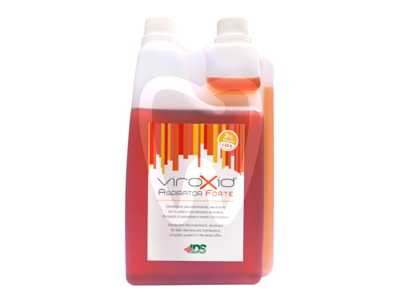 30 days return guaranteeVIROXID ASPIRATOR FORTE 1 L Bottle is a concentrated disinfectant and cleaning solution based on phenolic derivatives, designed for routine hygiene of dental aspiration/suction systems. It helps break down biofilm and neutralize unpleasant odors, supporting safer and more efficient management of the suction circuit in the dental clinic. Sales format: 1 liter bottle.