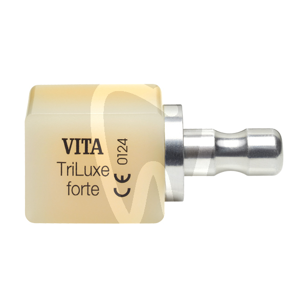 30 days return guaranteeVITABLOC TRILUXE F CEREC 0M1C TF-14/14 is a multilayer CAD/CAM ceramic block for laboratory and chairside digital workflows (CEREC). Designed on the Mark II block concept, it features three or four layers (Triluxe/Triluxe Forte) with different chromatic intensities to digitally reproduce the natural color transition of teeth. Supplied as a pack of 5 units, it is intended for esthetic restorations where lifelike shade gradients are required, even with thin ceramic thicknesses.