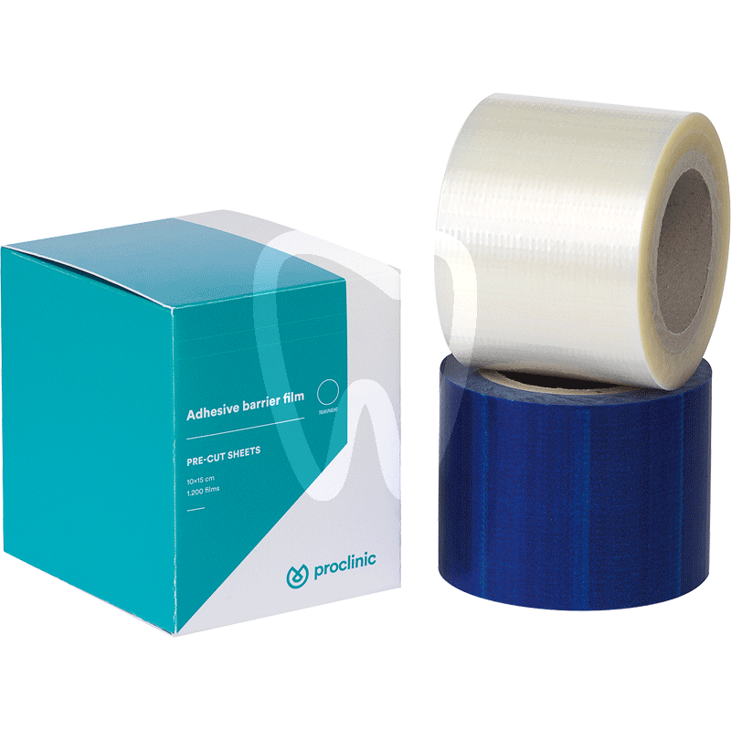 30 days return guaranteeSingle-use adhesive barrier film for the protection of surfaces on dental equipment, such as control panels, lamps, handles, air/water syringes. Prevents cross-contamination and protects equipment surfaces from harsh agents and disinfectant solutions. Dispenser roll with 1200 pre-cut 10 x 15cm sheets. Blue or clear.